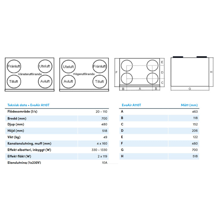 Acetec EvoAir A110T G4 – Kompakt och kraftfull ventilation
