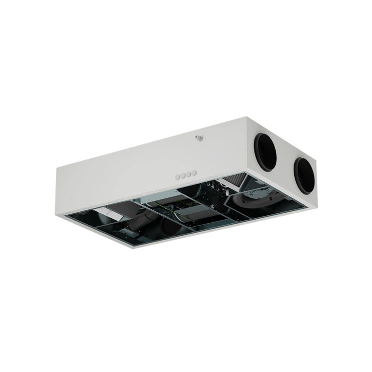 För större villor, många våtrum eller hög ventilationsbelastning behövs ofta ett aggregat med högre kapacitet. Kontrollera produktens maxflöde vid 100–200 Pa och jämför med ditt behov. Är du osäker?Kontakta oss så hjälper vi dig.