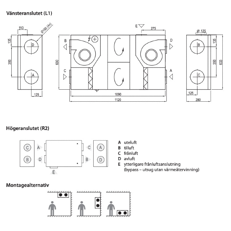 • Temperaturverkningsgrad: Upp till 85 % för hög energieffektivitet och lägre driftskostnader.