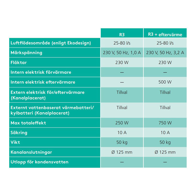 För större villor, många våtrum eller hög ventilationsbelastning behövs ofta ett aggregat med högre kapacitet. Kontrollera produktens maxflöde vid 100–200 Pa och jämför med ditt behov. Är du osäker?Kontakta oss så hjälper vi dig.