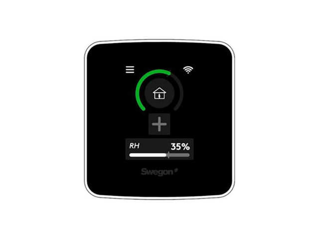 Ventilationen kan även styras automatiskt med automatiska funktioner (RH som standard, CO2 och VOC som tillbehör). Kan användas med alla Swegon CASA Genius ventilationsaggregat.