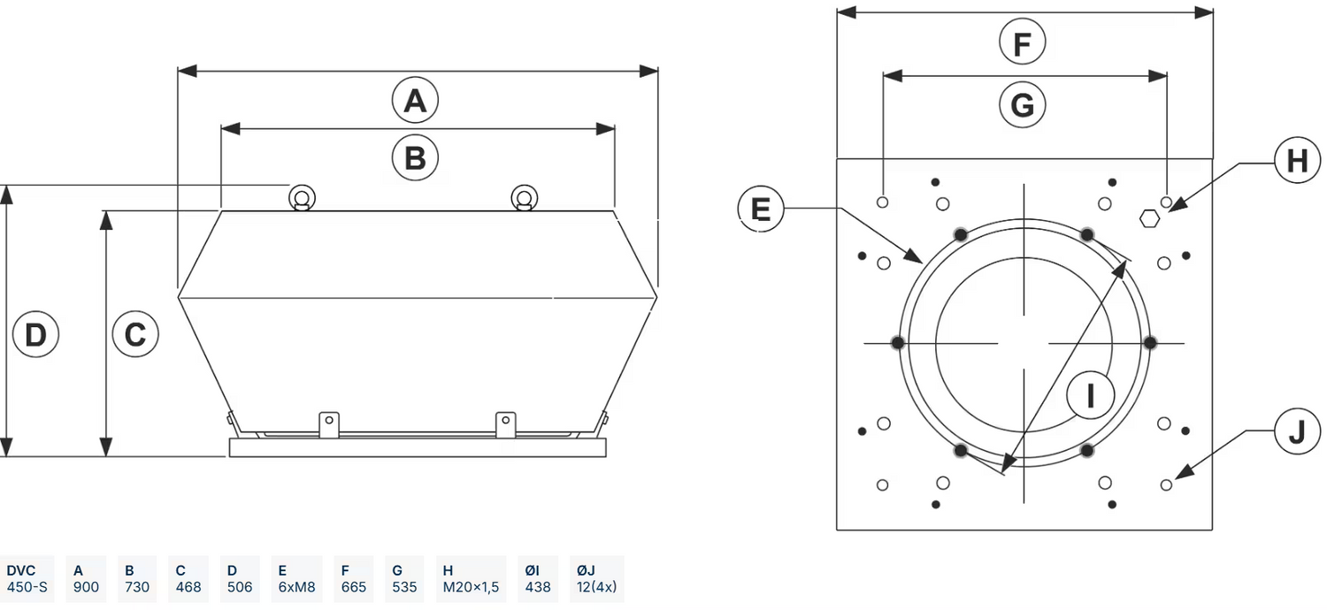 Den tekniska konstruktionen hos DVC-S är framtagen för att kombinera hållbarhet, effektivitet och flexibilitet. Fläkten kan anslutas till 1-fasmatning mellan 200–277 V eller 3-fasmatning mellan 380–480 V, och alla motorer är anpassade för både 50 och 60 Hz. Storlekarna 355 till 630 är dessutom monterade på effektiva vibrationsdämpare som minimerar ljudnivån och ökar driftstabiliteten.
